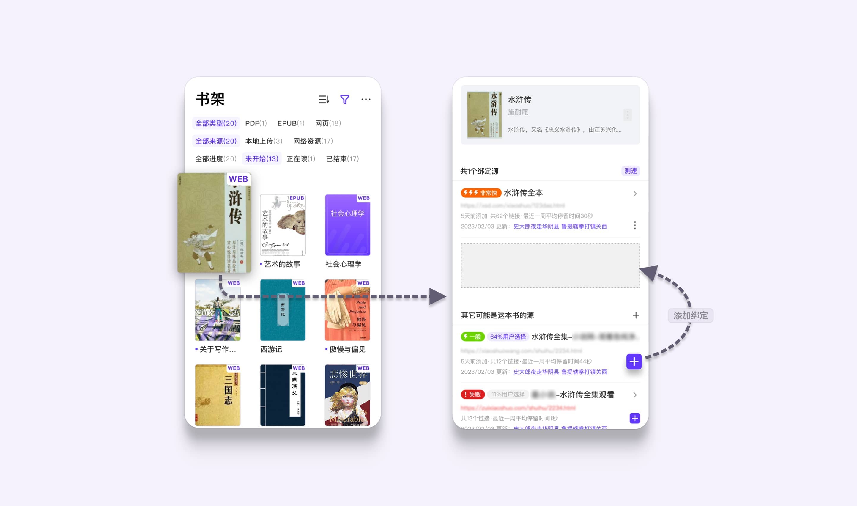 把网页添加到书架后,可以选择网友提供的更多源,根据自己的测速结果添加关注的源。如果这个源后面有更新,我们会通知你。