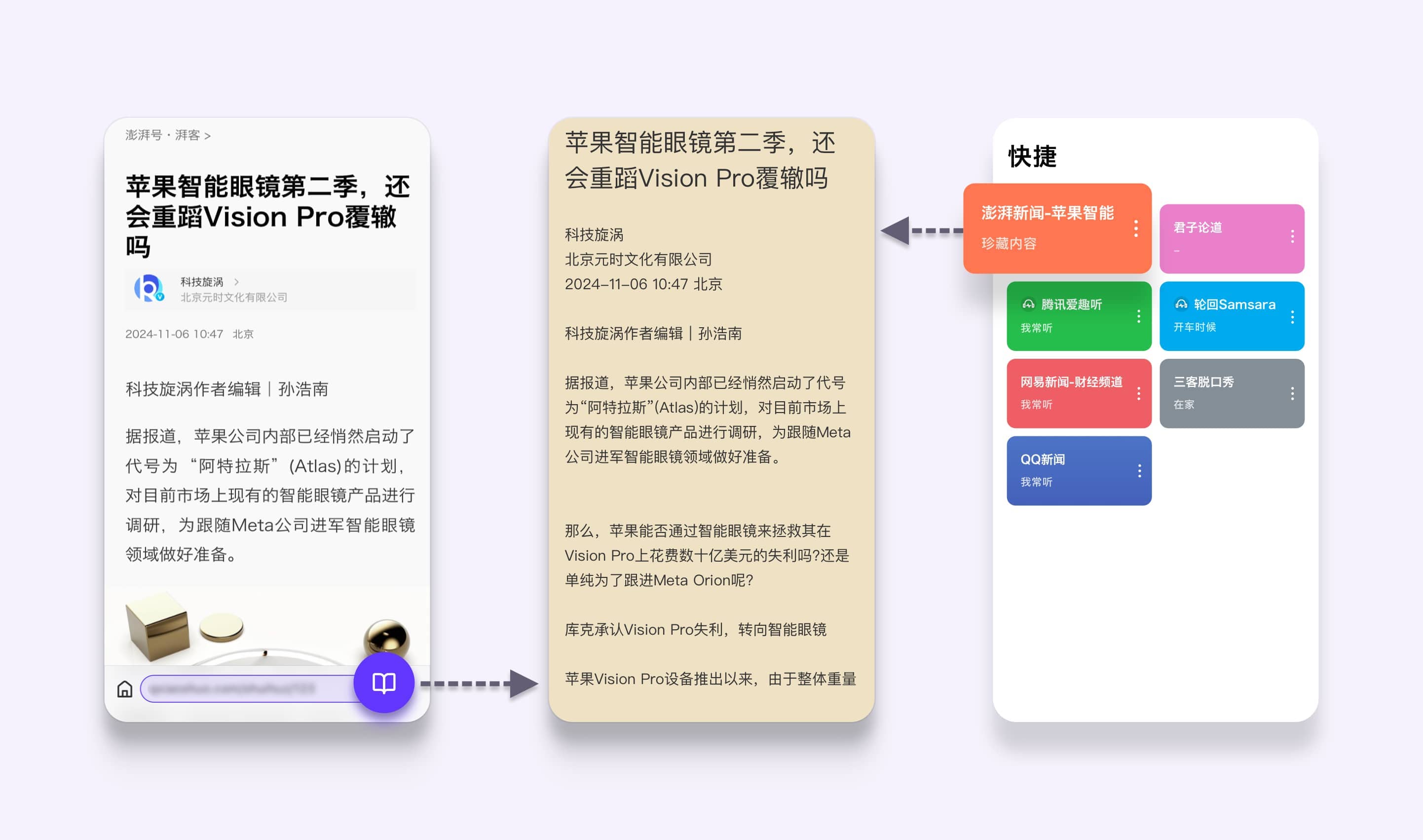 找到你看的新闻,如果出现要看的新闻页面后,点击净化阅读即可。